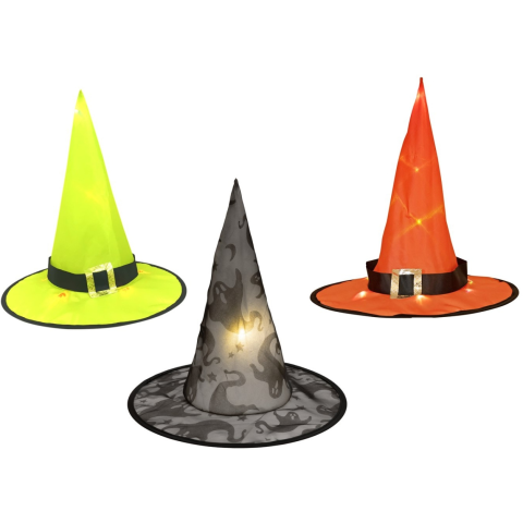 1 kép EuroPalms Halloween boszorkánysapka 3db készlet megvilágított 36cm