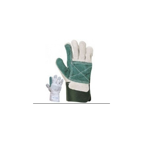 Tenyéren, hüvelyk- és mutatóujjon dupla bőrrel erősített marhahasíték munkavédelmi kesztyű extra méret Cikkszám: 154L - szürke marhahasíték tenyér - zöld marhahasíték megerősítés a mutató- és hüvelykujjon, valamint a tenyéren - erős vászon kézhát