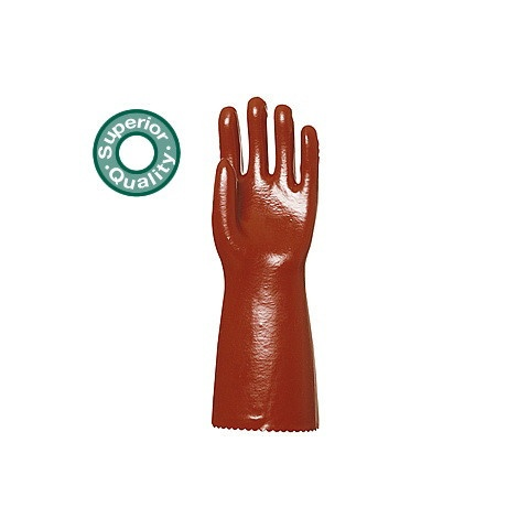 PVC light 40 cm-es piros sav-, lúg-, benzinálló védőkesztyű Cikkszám: 3640 - 40 cm hosszú - pamutra mártott bordó PVC - sav-, lúg- és olajálló - mikroorganizmusok elleni védelem - 1 mm vastag, erős védőkesztyű - higiénikus Actifresh- kiképzés a s