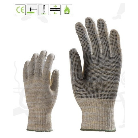 5-ös szinten vágásbiztos, hőálló, multiszálas (Kevlar/PA/pamut/acél), pettyezett tenyérrel 4535-ös - multiszálas védőkesztyű: kívül kopás- és emelt, 5-ös szinten vágásbiztos, hőálló alapanyagok (Kevlar/PA/acél) - belül komfortos pamut, 27 cm hosszú, g