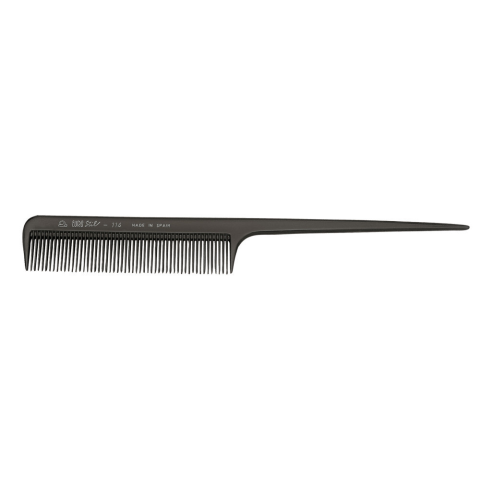 Professzionális styl fésű. Az Eurostil 00114 fésű egy professzionális styl fésű, amely alkalmas tupírozáshoz és hajtincsek leválasztásához. A fésű hossza 20,5 cm, a vége pedig műanyag végű, amely segít a pontos elválasztásban. A fésű fekete színű és kö