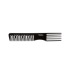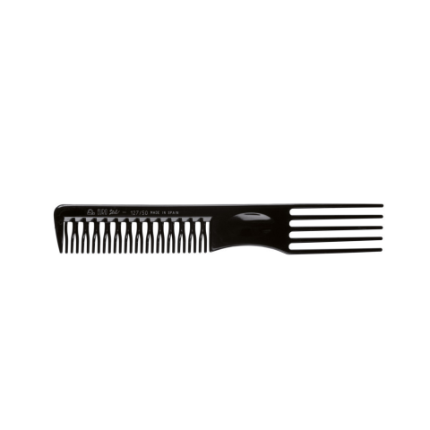 Hajlított fogú, villás fésű. Szín: fekete Hossza: 19cm A Eurostil 00127 fésű egy ívelt, villás végű fésű, amely alkalmas a haj formázására és elválasztására. A fésű fekete színben kapható, és 19 cm hosszú. A fésű anyaga műanyag, és könnyen tisztítható