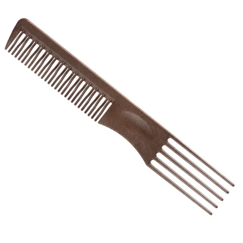 Ívelt, villás végű fésű. A Eurostil 00127 fésű egy ívelt, villás végű fésű, amely alkalmas a haj formázására és elválasztására. A fésű barna színben kapható, és 19 cm hosszú. A fésű anyaga műanyag, és könnyen tisztítható. A Eurostil 00127 fésű egy prak
