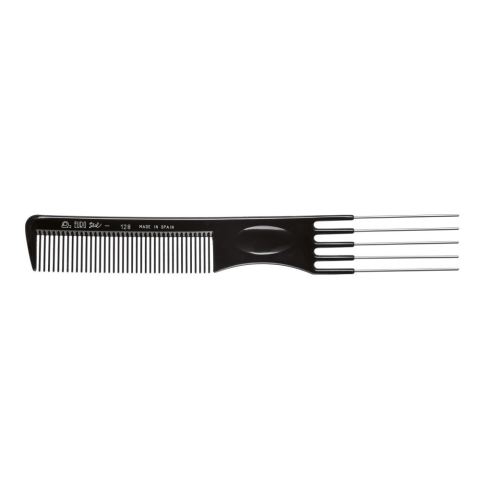 Villás végű fésű. A Eurostil 00128 fésű egy villás végű fésű, amely alkalmas a haj tincsezésére és formázására. A fésű fekete színű és 19,5 cm hosszú. A fésű rugalmas anyagból készült, könnyen tisztítható és strapabíró.