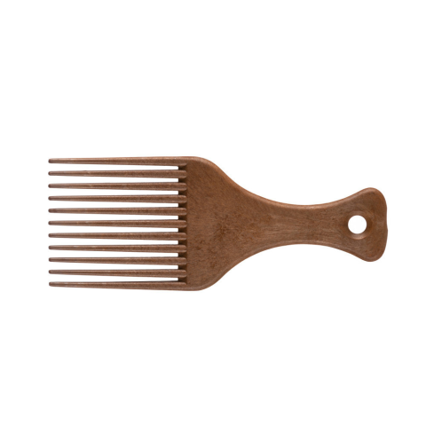 Afro fésű 11 foggal. Nagy méretben. Az Eurostil 00403 fésű egy afro fésű, amely 11 foggal rendelkezik és nagy méretű. Ez a fésű alkalmas a göndör és sűrű haj kifésülésére és formázására. A fésű műanyagból készült és barna színű.