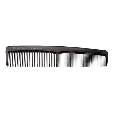 Professzionális bontó fésű. Az Eurostil 00454 fésű egy professzionális bontó fésű, amely alkalmas hajvágáshoz és frizurák készítéséhez. A fésű fekete színű, és 19,5 cm hosszú. A fésű osztott sűrűségű fogakkal rendelkezik, amely segít a haj elválasztás