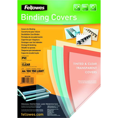 Irattartó fedél - típusa: elülső, A4 formátum, anyaga: PVC, átlátszó felület, áttetsző színű, darabszám: 100 db A FELLOWES A4-es praktikus átlátszó borítók gyűrűs kötéshez készültek, a prezentációk rendezéséhez és egyéb irodai dokumentumokhoz használhatók. A fedél fényes, és 180 mikron vastagságú.