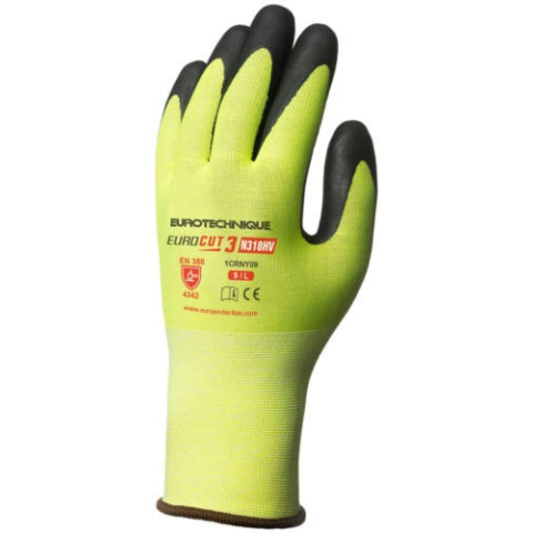 2 kép EUROTECHNIQUE Sárga 3-as szintű vágásbiztos mártott kesztyű