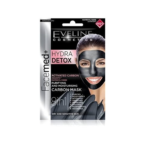 Arcmaszk - hidratáló, bőrnyugtató és tisztító hatás, női, 10 perces hatóidő, aktív szén hatóanyagú, érzékeny és száraz bőrre ajánlott Gondoskodj arról, hogy bőröd szép maradjon! Az ismert EVELINE COSMETICS arcmaszk felhasználási területe: arc. Első osztályú, hatékony ápolást kínál. Az innovatív összetevők és a kellemes illat gondosk