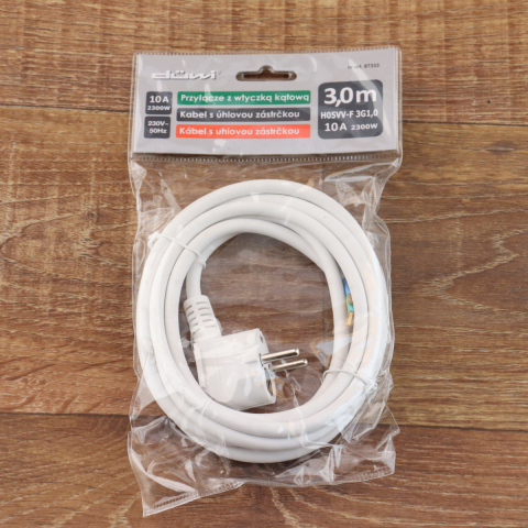 EverFlourish Hungary Kft. Csatlakozóvezeték földelt dugóval, 3m,, fehér,16A