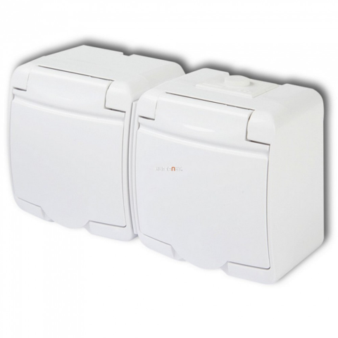 1 kép EverFlourish Hungary Kft. Falon kívüli dupla csatlakozó aljzat kültérre, fehér csapfedeles