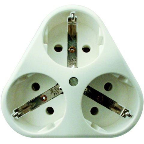 Átalakító, 3 csatlakozóaljzat, földelt, 90 fokban elforgatott