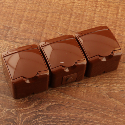 EverFlourish Hungary Kft. Hármas földelt dugalj, csapfedeles, barna villanyszerelés 1 kép