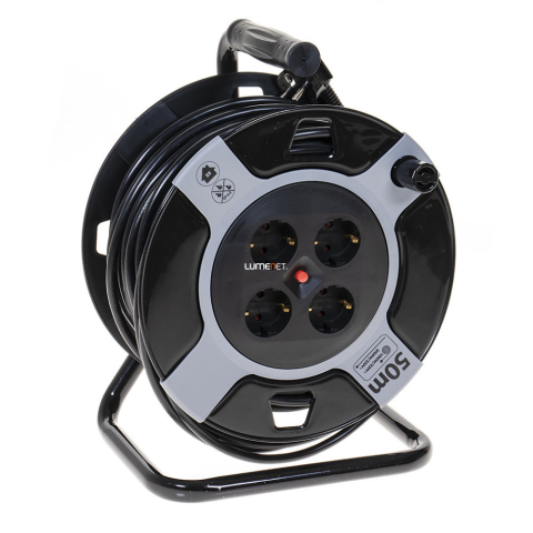 1 kép EverFlourish Hungary Kft. Kábeldob kültérre, 4 dugaljjal, 50 méteres, fekete/szürke