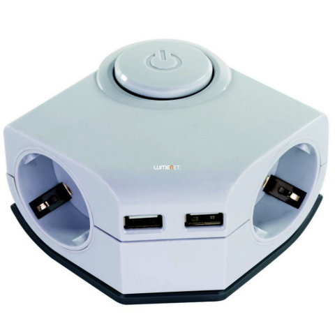 EverFlourish Hungary Kft. Kapcsolós elosztó, dupla (2xUSB) hosszabbító, elosztó 1 kép