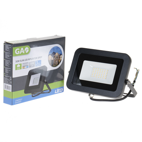 A GAO Slim 30W 4000K 3000lm IP65 fekete LED reflektor 6985H védettsége, korrózió álló burkolata és a tömített kábel csatlakozása miatt ideális választás kültéri használatra. A rögzítő keret segítségével egyszerűen a megfelelő pozícióba billenthető a