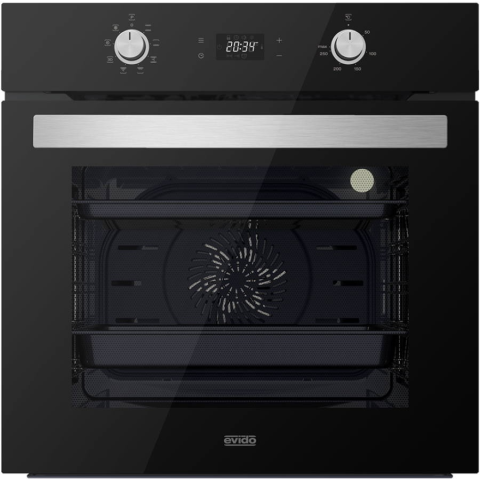 EVIDO LEVEL 60B beépíthető sütő, multifunkciós, 60 cm, fekete EVIDO LEVEL 60B multifunkciós sütő Fekete üveg front 8 funkció digitális kijelző időzítővel süllyeszthető vezérlőgombok 72 literes sütőtér 3D sütés – sütés több szinten 3 rétegű Low-E üveg
