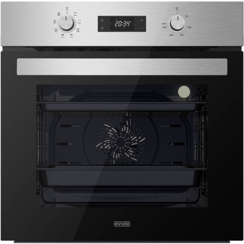 EVIDO LEVEL 60X beépíthető sütő, multifunkciós, 60 cm, inox/fekete üveg EVIDO LEVEL 60X MULTIFUNKCIÓS SÜTŐ 	ujjlenyomatmentes inox üveg front 	8 funkció 	digitális kijelző időzítővel 	süllyeszthető vezérlőgombok 	72 literes sütőtér 	3D sütés – sütés