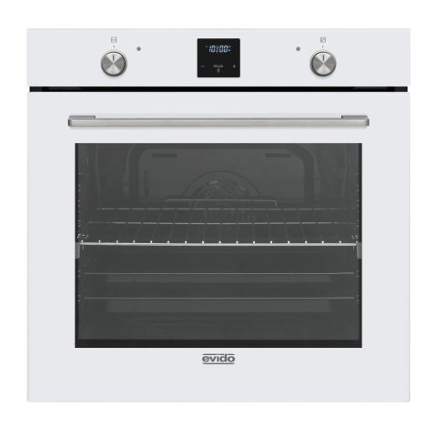 EVIDO LEVEL 60W multifunkciós sütő, fehér EVIDO LEVEL 60W multifunkciós sütő Általános információk: Fehér üveg front, 8 sütő funkció, digitális kijelző időzítővel, süllyeszthető vezérlőgombok, 78 literes sütőtér, 3D sütés – sütés több szinten, hőlé
