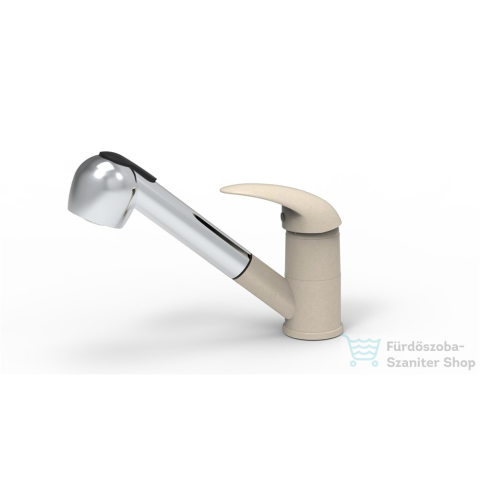 1 kép    EVIDO Pinguin-S kihúzható zuhanyváltós gránit mosogató csaptelep, bézs/króm 105741