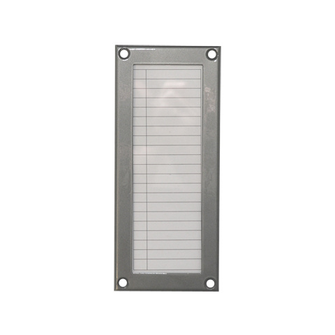 1 soros névtábla, fémkerettel, plexi előlappal EVKT digitális központokhoz A névtábla főbb jellemzői 1 soros névtábla kb. 20 név elhelyezésére. Cserélhető névsor. Festett fémkeret. Plexi előlap. EVKT 1 oszlopos, digitális központokhoz használható. Mérete: 77 x 179 x 11 mm.