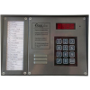 Digitális kaputelefon központ 1 oszlopos névtáblával A központ főbb jellemzői Mikroprocesszoros vezérlő elektronika. Optikai szenzoros, érintőbillentyűzet. 4 db hétszegmenses LED kijelző. Maximum 255 lakáskészülék csatlakoztatható. 2 vezetékes, buszos rendszerű lakáskészülék csatlakoztatás. Minden lakáshoz kapunyitó kód programozható. Lakásonként előre definiált kódok (megváltoztathatók). Lakásszám figyelés. Postáskód kiadható. Pro