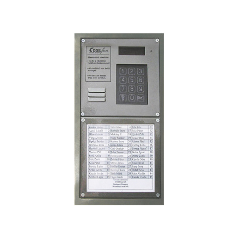 Digitális kaputelefon központ max. 255 lakáshoz proximity olvasóval, 3 oszlopos névtáblával, süllyesztett kivitelben A központ főbb jellemzői Mikroprocesszoros vezérlő elektronika. Optikai szenzoros, érintőbillentyűzet. Beépített 125 kHz-es EM proximity olvasó. Kompatibilis a SOYAL EM 125 kHz-es proximity kártyákkal. 4 db hétszegmenses LED kijelző. Maximum 255 lakáskészülék csatlakoztatható. 2 vezetékes, buszos rendszerű lakáskészülék csatlakoztat
