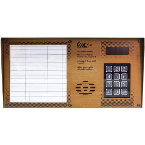 Digitális kaputelefon központ max. 255 lakáshoz, proximity olvasóval, 3 oszlopos névtáblával, alumínium előlappal A központ főbb jellemzői Új, teljesen rozsdamentes kivitel. 5 mm vastag eloxált alumínium előlap. Szinterezett alumínium esővédő. Mikroprocesszoros vezérlő elektronika. Optikai szenzoros, érintőbillentyűzet. Beépített 125 kHz-es EM proximity olvasó. Kompatibilis a SOYAL EM 125 kHz-es proximity kártyákkal. 4 db hétszegmenses LED kijelző