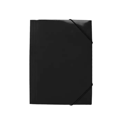 Gumis mappa A4, 400g. karton EVOffice fekete Exkluzív kivitelű fényes gumis mappa 3 pólyával. Alapanyag 400 gr/m2. A4 méretű iratok lefűzés vagy lyukasztás nélküli biztonságos tárolására. Hiteles tájékoztatás: Elkötelezettek vagyunk termékeink biz