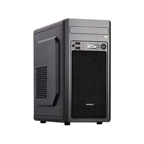 Számítógépház - mATX (Micro ATX), 2× 3,5", 2× 2,5", usb 2.0, USB 3.2 Gen 1, fejhallgató és mikrofon, processzor hűtő max. magassága 140 mm, videókártya max. hossza 320 mm, tápegység nélkül, acél oldalfal Mini Tower Evolveo M2 első látásra a karcsú, fekete kivitel, perforált oldalfal. Számítógépes szekrény tervezték alaplapok támogatják az Intel és az AMD. A szekrény kompatibilis Micro ATX méretű táblá