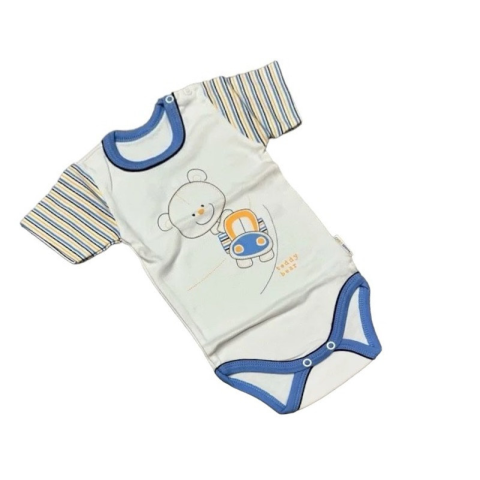 1 kép Ewa Rövid ujjú Body - Fehér/Kék Macis Csíkos Ujjal - 74