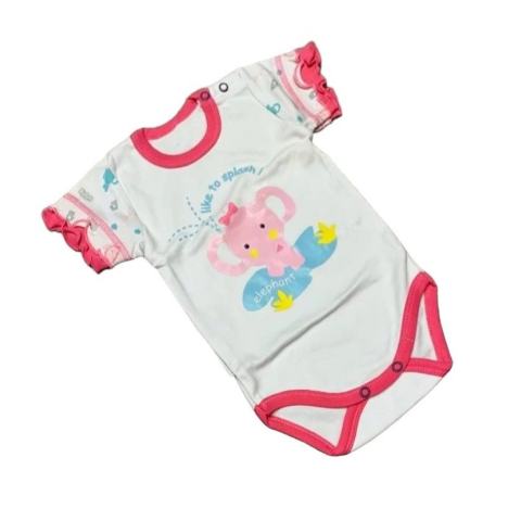 1 kép Ewa Rövid ujjú Body - Fehér/Rózsaszín Elefántos - 68