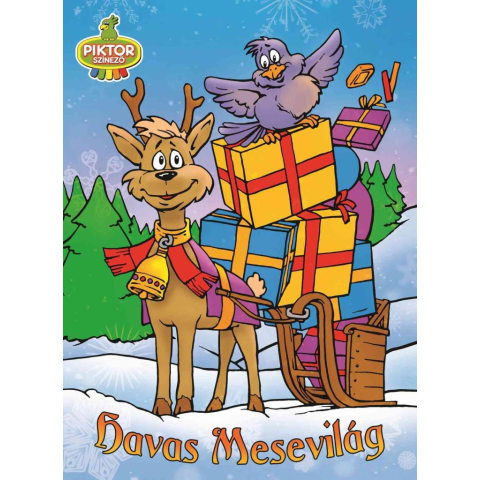 A kifestőben a téli erdő vidám állatai és mókás manói jelennek meg rövid versikék kíséretében.