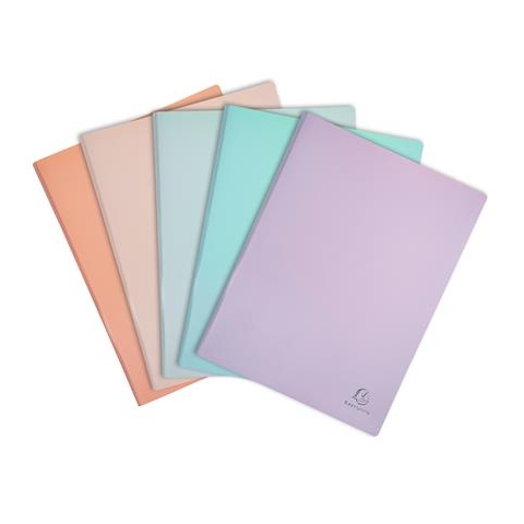 Visszafogott pasztell színek! -puha PP boritó -0,5 mm vastag PP anyagból készült -30 tasak -kapacitás: 60 lap -méret: 24 x 32 cm -vegyes pasztell színek, a szín nem választható (kék, korall, zöld, mályva, rózsaszín)