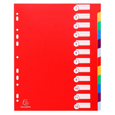 Elválasztólap PP Exacompta A/4 maxi, 12 részes színes - P2220-0177 - Elválasztólapok -