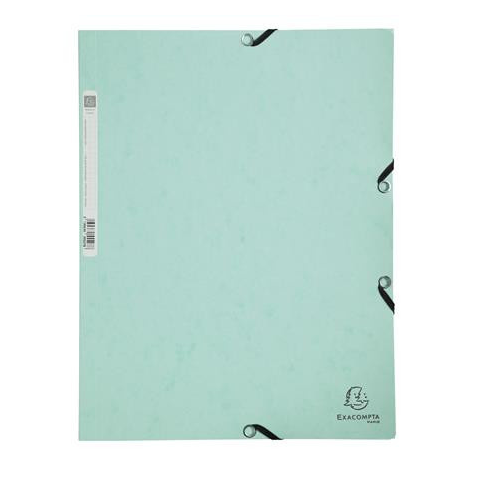 Gumis mappa, prespán, A4, EXACOMPTA, Aquarel, zöld Prémium minőségű környezetbarát gumis mappa tartós használatra! -A4 méretű dokumentumok tárolására -400 g/m2 -a sarkokban elhelyezett gumiszalaggal zárható -3 belső fül a biztonságos tárolásért -kap
