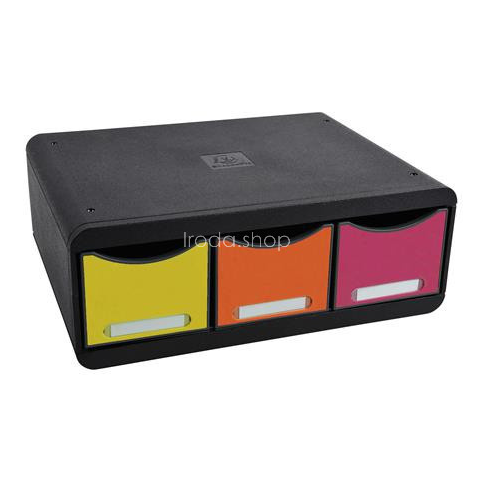 Irattároló, műanyag, 3 fiókos, EXACOMPTA Iderama® Toolbox, fekete Csillogó vidám színekben pompázó fiókos tároló! -áttetsző feliratozó ablakokkal és cserélhető betétcímkékkel -3 fiók az irodai kiegészítőknek -fekvő tájolás -méret: 270 x 355 x 135 mm -