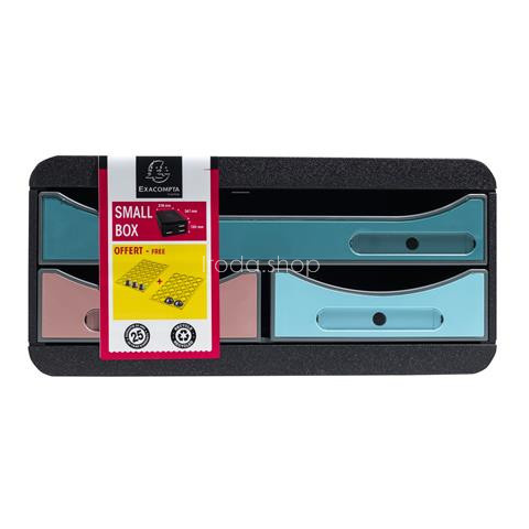 Irattároló, műanyag, 3 fiókos, EXACOMPTA Smallbox Skandi, színes Környezetbarát irattároló hideg Skandi stílusú színekkel! -3 fiók különböző méretű dokumentumokhoz -43 mm magas fiókok, 1 fiók az A4+-s dokumentumokhoz, 2 keskenyebb fiók az irodai kiegé