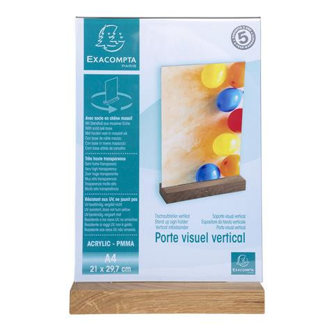 Kiválóan alkalmas fotók, információk, menük, ajánlatok asztali kihelyezésére. -minőségi akrilból készült -álló tájolás -áttetsző -faból készült talapzat -kétoldalas -méret: 210 x 50 x 330 mm -ellnáll az UV sugárzásnak -garancia: 5 év