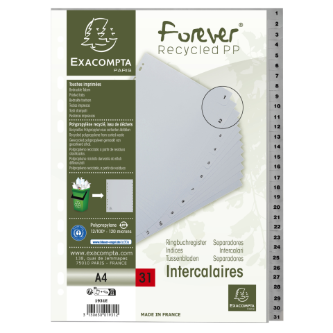 Teljes Exacompta Nature future elválasztólapok PP 1-31 31 db termékleírás