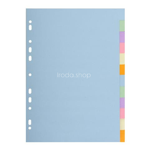 Regiszter, karton, A4, 12 részes, EXACOMPTA, pasztell színek Környezetbarát 170 g/m2 papírból készült -méret: A4 -10 részes -előlyukasztott lefűzőrész -10 különböző pasztell színű fül a könnyű rendszerezéshez -Blue Angel minősítéssel rendelkező anyagb