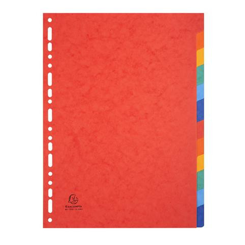 Regiszter, karton, A4, 12 részes, EXACOMPTA, színes Minőségi 225 g/m2 papírból készült -méret: A4 -12 részes -előlyukasztott lefűzőrész -12 különböző színű fül a könnyű rendszerezéshez