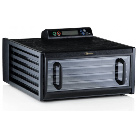 Élelmiszer szárító-aszaló 0,74 m2 szárító felülettel (fekete, digitális kijelző, 5 tálca, átlátszó ajtóval).