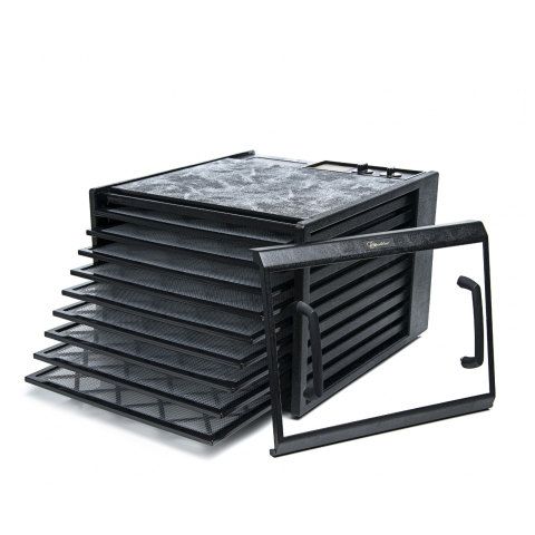 Élelmiszer szárító-aszaló 1,39 m2 szárító felülettel (fekete, 9 tálca, időzítő, átlátszó ajtóval).