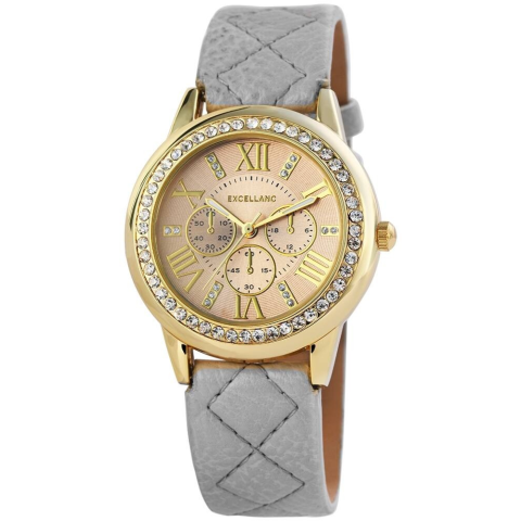 Teljes Excellanc női karóra szürke műbőr szíjjal, kristályokkal termékleírás