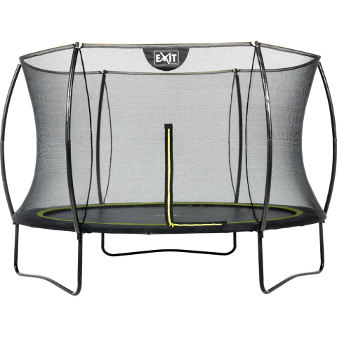 A lábakon álló EXIT Silhouette trambulin jó minőségű kerek trambulin. A biztonsági háló, amely a lábakon álló trambulinhoz szabványszerű tartozékát képezi, hajlított oszlopokkal van felszerelve, így a háló erősen megfeszült. A kiváló minőségű védőperem teljesen lefedi a horganyzott rugókat, és speciálisan kialakított lábvédő rendszerrel van ellátva, így a láb nem tud bejutni a rugók közé. Az erős rugók garantálják a jó ugróerőt. A Silhouette tra
