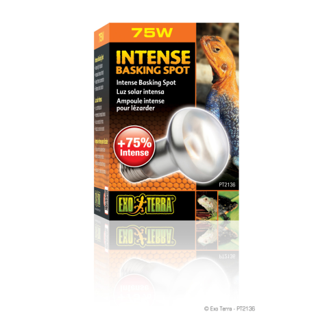 Exo Terra Intense Basking Spot sütkérező lámpa nappal aktív hüllők részére, UVA fénnyel. Exo Terra Intense Basking Spot nappal aktív hüllőkhöz ajánlott sütkérező lámpa, mely tökéletes választás, ha sütkérező helyet szeretnénk kialakítani kedvenceink sz