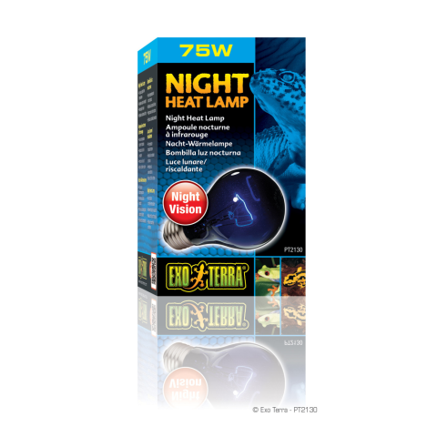 Éjszakai holdfény izzó hüllőknek. Az izzó a természetes holdfényt szimulálja, így lehetővé teszi az éjszakai nézegetést anélkül, hogy megzavarná az állat nappali és éjszakai ciklusát. A kibocsátott fény kékes színű a kék üveg használatának köszönhetően