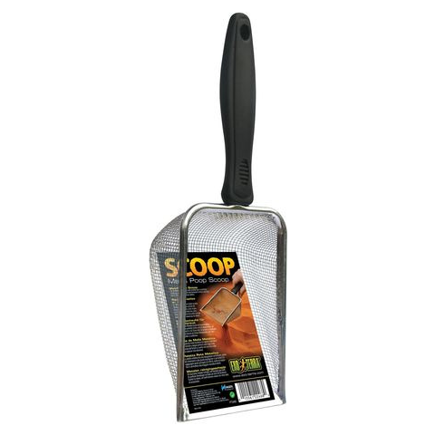 Az Exo Terra Scoop segítségével könnyen el lehet távolítani az állati ürüléket a sivatagi terráriumok talajából. Nélkülözhetetlen eszköz a terráriumban lévő homokfelületének takarításához. Ez a tartós, kényelmes fogású fémkanál tökéletesen méretezett és szögelt, hogy elérje a terrárium sarkait, és finomabb hálóval rendelkezik, hogy további törmelékeket elkapjon.