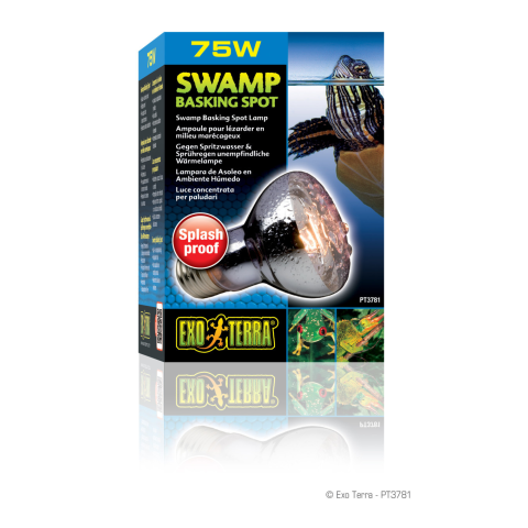 Exo-Terra Swamp Glo sütkérező izzó extra erős neodímium üvegből. Párás, vizes terráriumokhoz ajánlott. Az Exo Terra Swamp Basking Spot egy fröccsenés- és páraálló sütögető spotlámpa, amelyet vízi vagy rendkívül párás terráriumokban való használatra ter